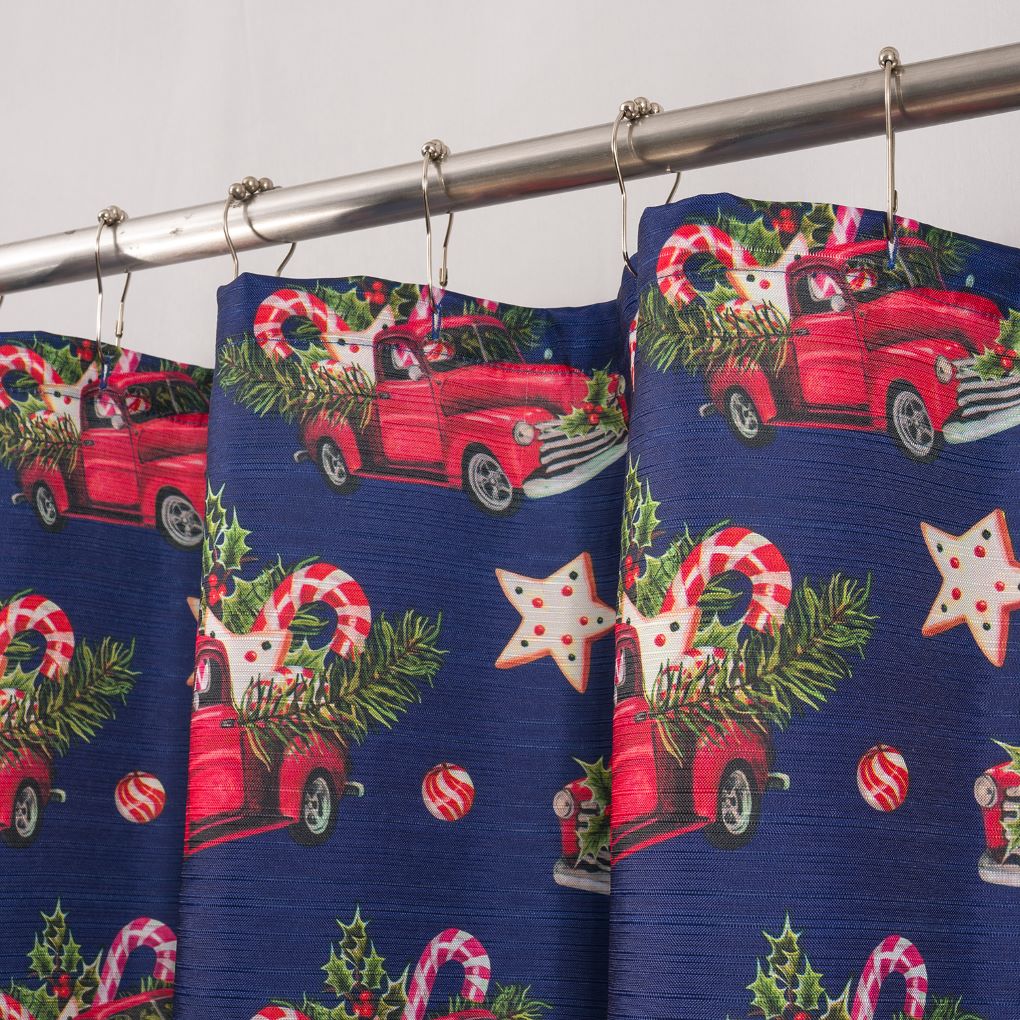 Christmas 23 Microfiber Navy Truck Shower Curtain
