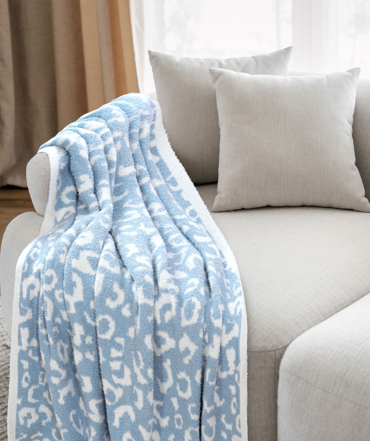 Leopard Feather Knit Throw 50"x60" Blue
