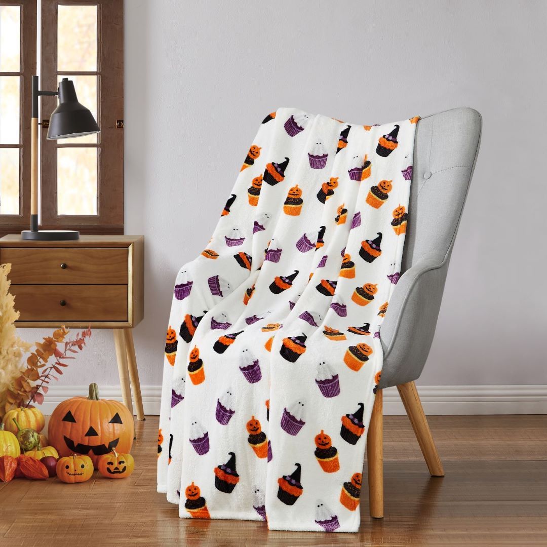 Halloween Ghost Cupcake Printed Flannel Throw 50" x 60"