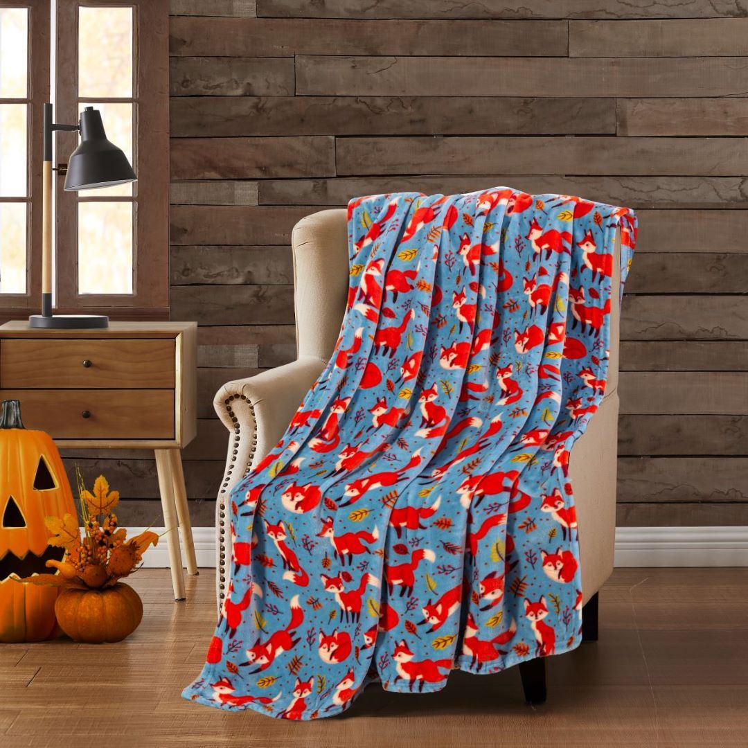 Harvest Fox Printed Flannel Throw 50"x70"
