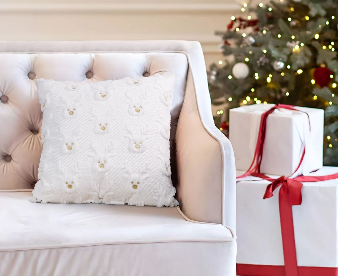 Xmas Reindeer Emb Fur Pillow 18x18 White